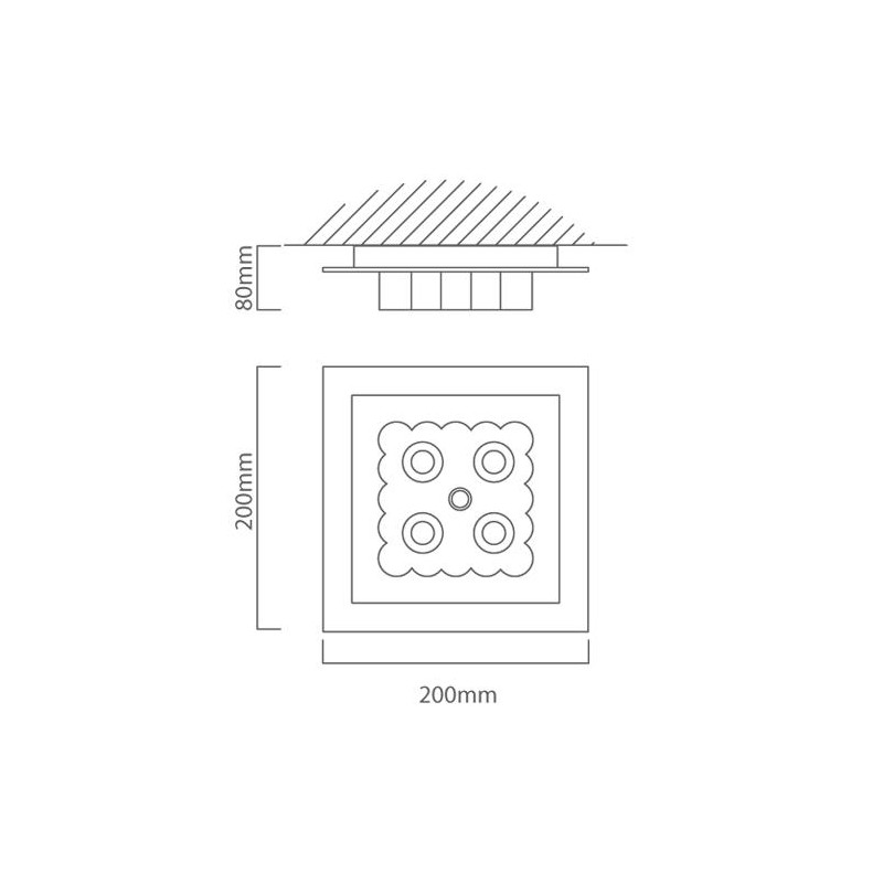 Square Alum./Chrome C/Light with Crystal glass dif Incl.4x10W G4 12V