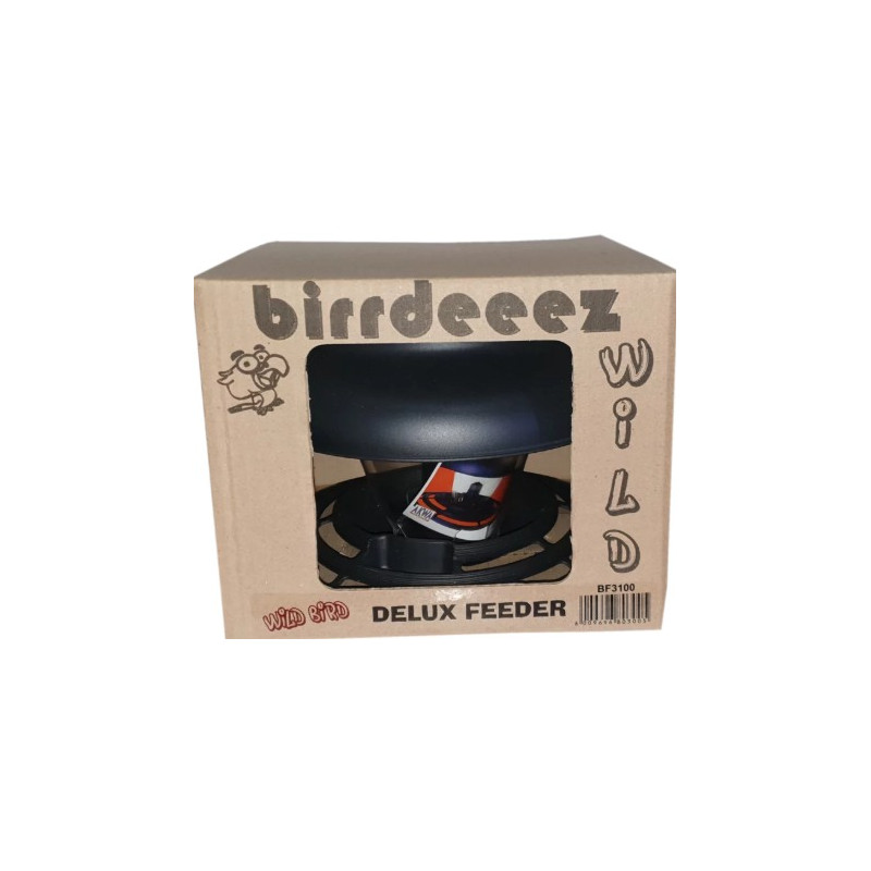 The Deluxe Wild Bird Feeder in black is a stylish and practical way to attract and feed a variety of wild birds. Designed for outdoor use, it features a sturdy construction and a sleek black finish that blends seamlessly into any garden, patio, or outdoor setting. Easy to fill and maintain, this feeder provides a reliable feeding station while enhancing your outdoor space.
