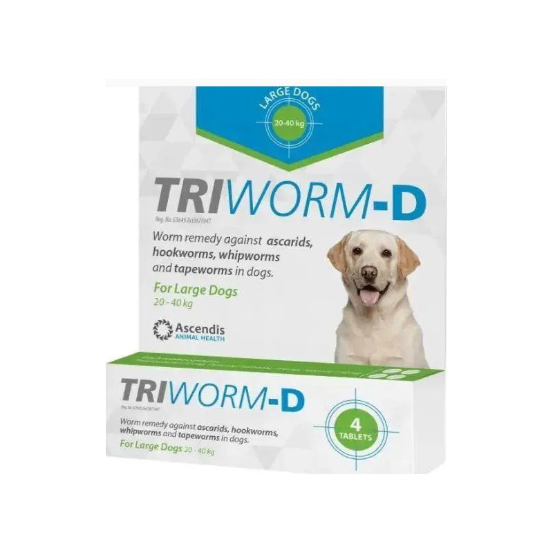 • Triworm-D Green Large Dog 4 Tablets 20kg To 40kg Dogs Deworming Treatment
