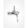 The plumbing for the Britannia exposed single lever shower mixer is to be visible against the wall.