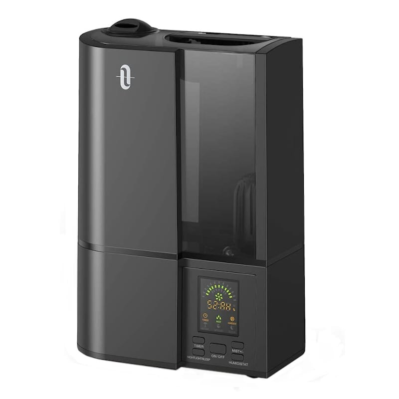 The TaoTronics TT-AH001 4L Ultrasonic Cool Mist Bedroom Humidifier offers quiet operation for bedroom Use. Its Ultrasonic humidifiers are incredibly silent, produces less than 38 dB of noise, and are perfect for your baby and a disturbance-free sleep at night. Thanks to its 4L Tank Capacity, it can stay on all night. Over a gallon of water lasts for 12-30 hours working time on a full tank, this is designed to humidify the air in rooms up to 10-30 m², bedroom, nursery, office and so on. It also features an informative LED display with a built-in Humidistat which tells you the current RH. You can very easily choose between three mist levels to set your desired humidity level, 40-60% is recommended. Choose to turn on the nightlight, or enter sleep mode to shut off LED screen for a discreet sleep at night. Its also very safe to use, it automatically shuts off when water runs out; Microporous cartridge filters the water from micro-organisms and bad odor, we recommend you change filters every 4-6 months. Please do NOT use with essential oils, which will damage the machine and cause leakage problems.