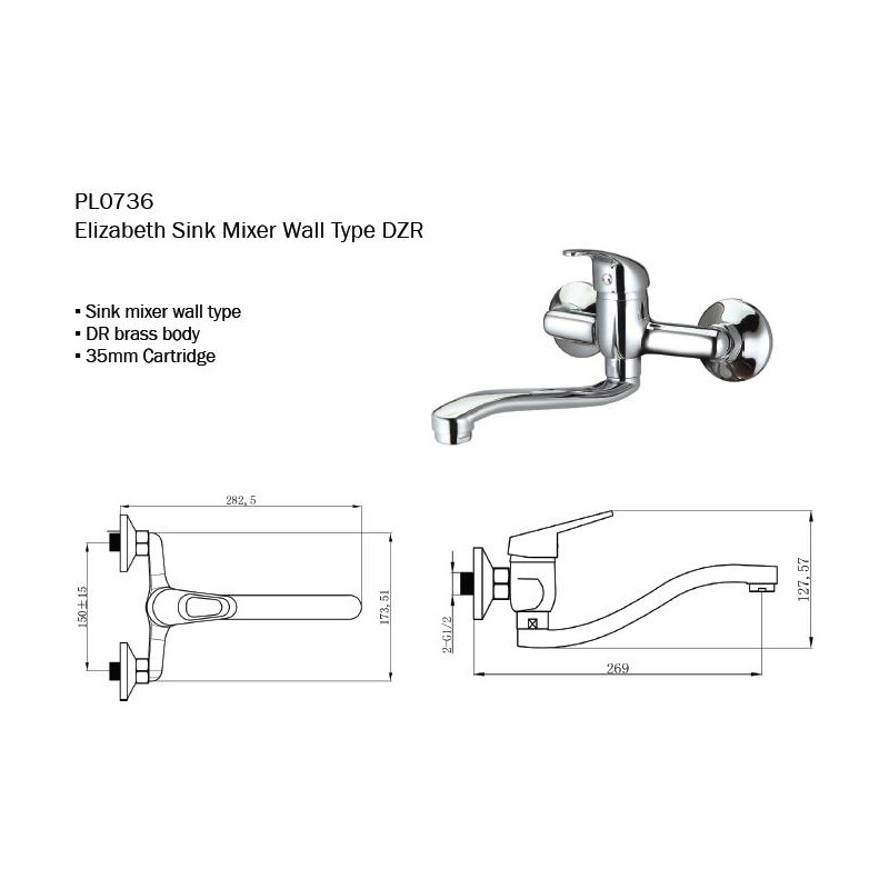 > Plumbing>Kitchen>Sink>Mixer>Wall>Sink Mixer Wall Type DZR - Elizabeth